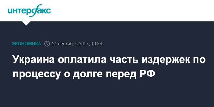 Москва. 21 сентября. INTERFAX.RU - Украина оплатила часть издержек в рамках разбирательства о долге по выкупленным Россией евробондам, исполнив тем самым решение лондонского суда, сообщил Минфин РФ.