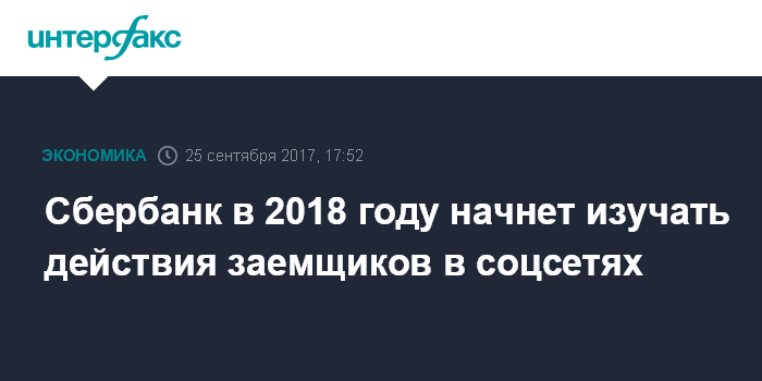 Сбербанк в 2018 году начнет изучать действия заемщиков в соцсетях