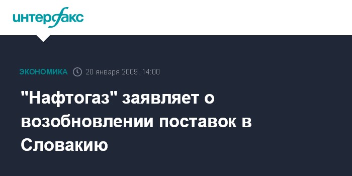 "Нафтогаз" заявляет о возобновлении поставок в Словакию