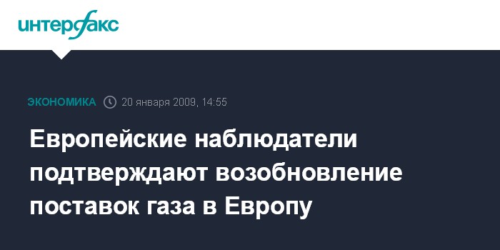 Брюссель. 20 января. INTERFAX.RU - Президент Еврокомиссии Жозе Мануэль Баррозу заявил, что европейские наблюдатели сообщают о возобновлении поставок газа в страны Европы.