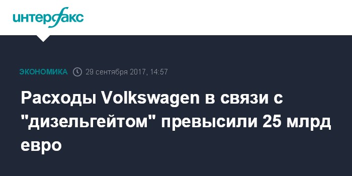 Расходы Volkswagen в связи с "дизельгейтом" превысили 25 млрд евро