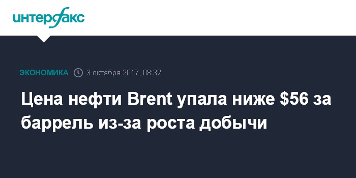 Цена нефти Brent упала ниже $56 за баррель из-за роста добычи