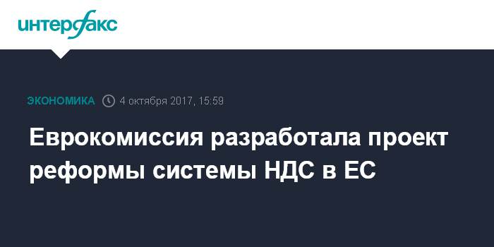 Москва. 4 октября. INTERFAX.RU - Европейская комиссия предложила программу самой глубокой за четверть века реформы системы налога на добавленную стоимость (НДС) в Евросоюзе.