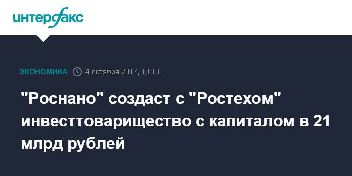 "Роснано" создаст с "Ростехом" инвесттоварищество с капиталом в 21 млрд рублей