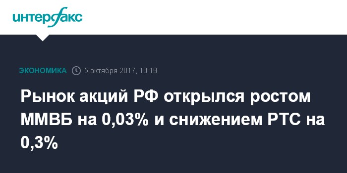 Рынок акций РФ открылся ростом ММВБ на 0,03% и снижением РТС на 0,3%