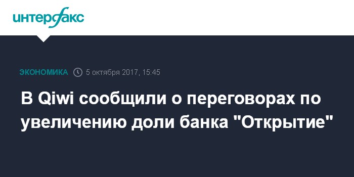 В Qiwi сообщили о переговорах по увеличению доли банка "Открытие"