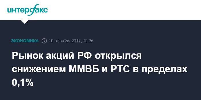 Рынок акций РФ открылся снижением ММВБ и РТС в пределах 0,1%