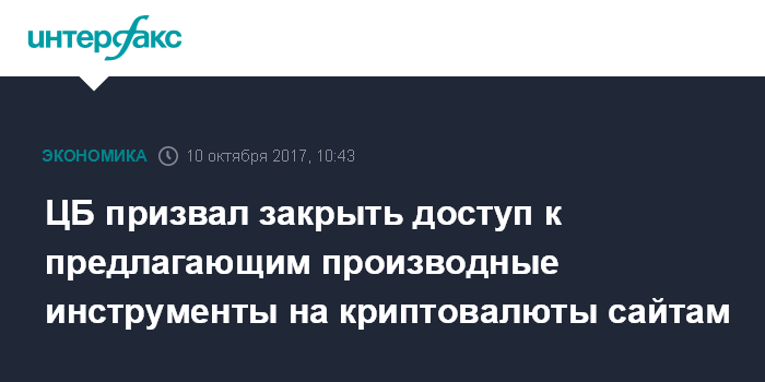 ЦБ призвал закрыть доступ к предлагающим производные инструменты на криптовалюты сайтам