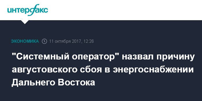 "Системный оператор" назвал причину августовского сбоя в энергоснабжении Дальнего Востока