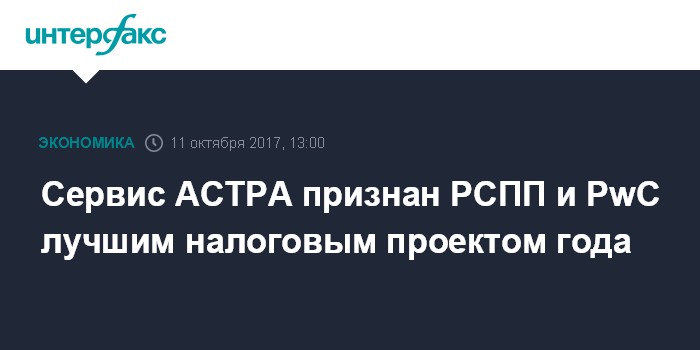 Сервис АСТРА признан РСПП и PwC лучшим налоговым проектом года