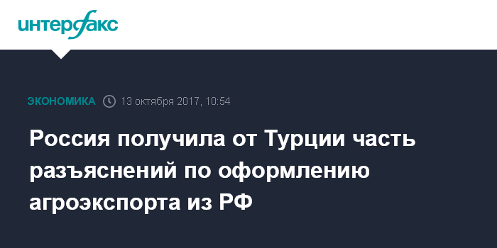 Россия получила от Турции часть разъяснений по оформлению агроэкспорта из РФ