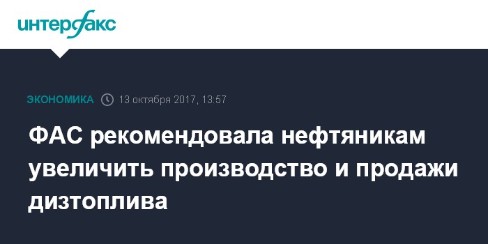 ФАС рекомендовала нефтяникам увеличить производство и продажи дизтоплива
