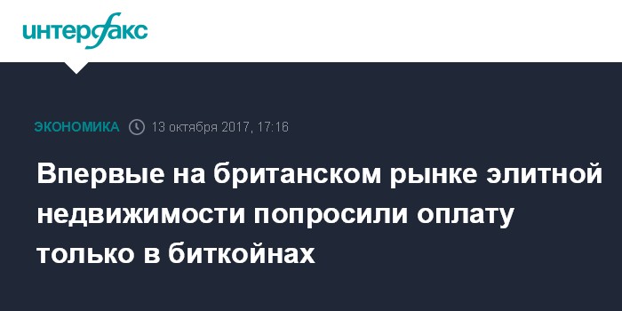 Впервые на британском рынке элитной недвижимости попросили оплату только в биткойнах