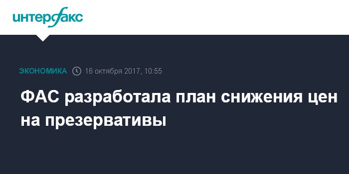 Москва. 16 октября. INTERFAX.RU - Федеральная антимонопольная служба направила в правительство свои предложения о том, как сделать барьерные контрацептивы менее дорогими и более доступными. По мнению ФАС, снижение цен на презервативы возможно посредством устранения существующих административных и экономических барьеров.