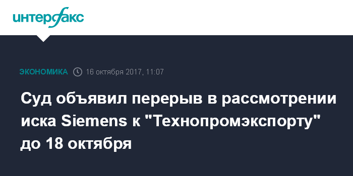 Суд объявил перерыв в рассмотрении иска Siemens к "Технопромэкспорту" до 18 октября