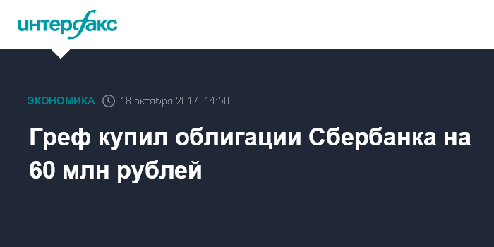 Греф купил облигации Сбербанка на 60 млн рублей