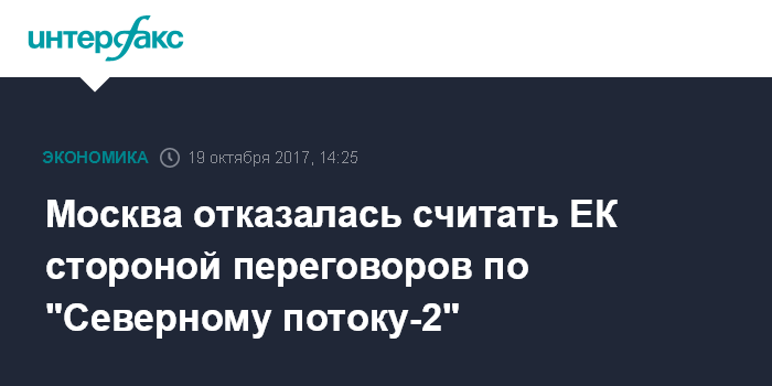 Москва. 19 октября. INTERFAX.RU - Россия не видит Еврокомиссию стороной для переговоров по вопросу реализации проекта "Северный поток 2", так как это чисто коммерческий проект, заявил постпред РФ при ЕС Владимир Чижов.