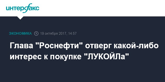 "Мы никогда не интересовались покупкой "ЛУКОЙЛа". В наших планах этого нет, потому что нет предложения на рынке", - заявил глава "Роснефти" Игорь Сечин на пресс-конференции. По его мнению, обсуждение покупки "ЛУКОЙЛа" похоже на PR-кампанию для повышения капитализации.
