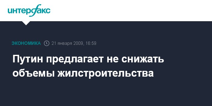 Москва. 21 января. INTERFAX.RU - Премьер-министр РФ Владимир Путин ставит задачу перед правительством сохранить в 2009 г. темпы и объемы введения жилья.