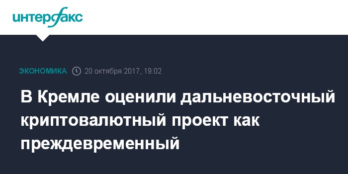В Кремле оценили дальневосточный криптовалютный проект как преждевременный