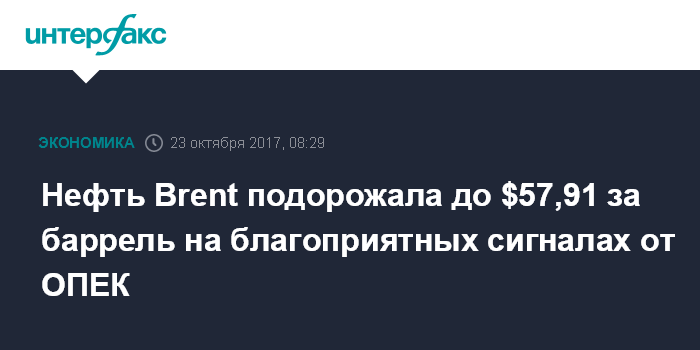 Нефть Brent подорожала до $57,91 за баррель на благоприятных сигналах от ОПЕК