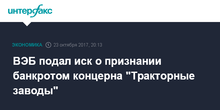 ВЭБ подал иск о признании банкротом концерна "Тракторные заводы"