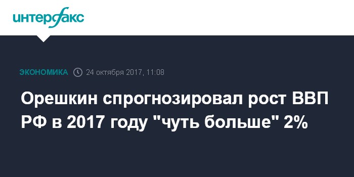 "По факту имеем II квартал - уже 2,5%, III квартал - 2,2%. И вполне выходим на эти 2%, даже чуть больше к концу этого года", - добавил Орешкин.