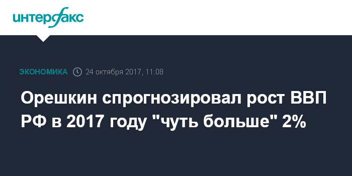 Москва. 24 октября. INTERFAX.RU - Рост ВВП РФ в текущем году составит "чуть больше" 2%, заявил министр экономического развития Максим Орешкин, выступая на форуме "Россия зовет!", организованном "ВТБ Капиталом".