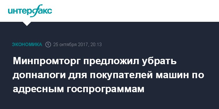 Минпромторг предложил убрать допналоги для покупателей машин по адресным госпрограммам