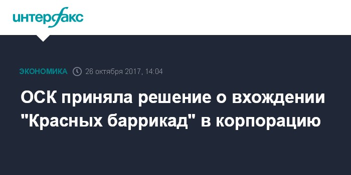 ОСК приняла решение о вхождении "Красных баррикад" в корпорацию