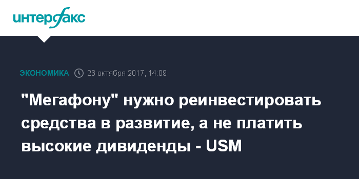 "Мегафону" нужно реинвестировать средства в развитие, а не платить высокие дивиденды - USM