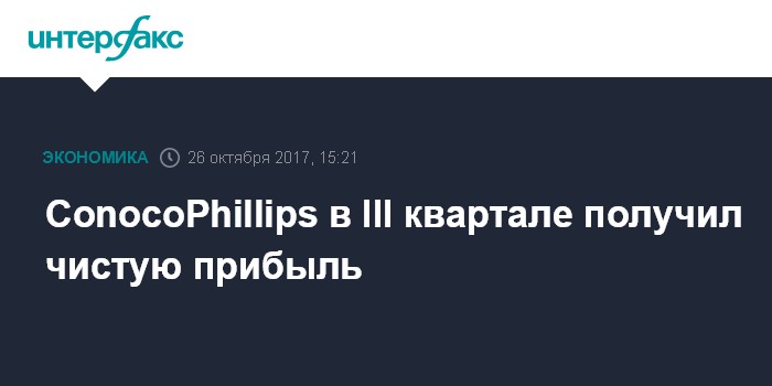 Нью-Йорк. 26 октября. ИНТЕРФАКС - Американский нефтепроизводитель ConocoPhillips завершил третий квартал на прибыльном уровне, акции дорожают благодаря сильной отчетности.