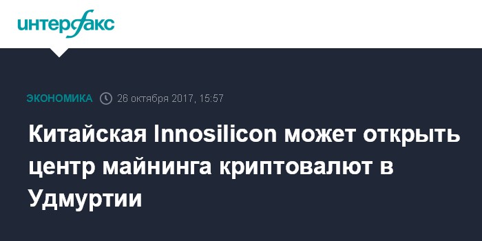 Китайская Innosilicon может открыть центр майнинга криптовалют в Удмуртии
