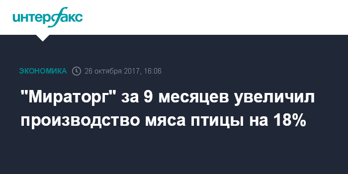 Как сообщалось, в 2016 году "Мираторг" произвел 102 тыс. тонн мяса птицы, что на 37% больше, чем годом ранее.
