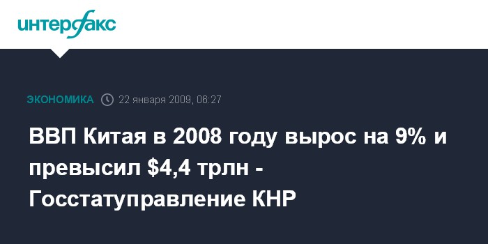 ВВП Китая в 2008 году вырос на 9% и превысил $4,4 трлн - Госстатуправление КНР