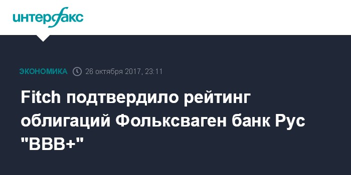 Fitch подтвердило рейтинг облигаций Фольксваген банк Рус "BBB+"