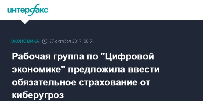 Москва. 27 октября. ИНТЕРФАКС - Возглавляемая Сбербанком рабочая группа по подготовке предложений в рамках программы "Цифровая экономика" разработала проект обязательного страхования от киберрисков.