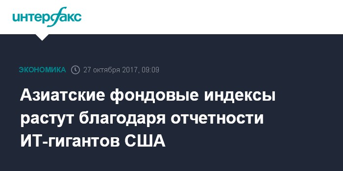 Азиатские фондовые индексы растут благодаря отчетности ИТ-гигантов США