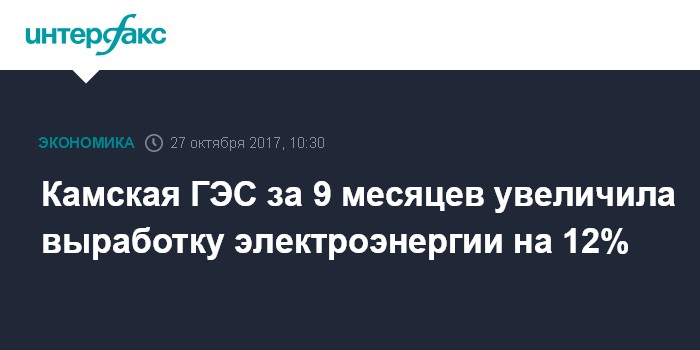 Пермь. 27 октября. ИНТЕРФАКС-ПОВОЛЖЬЕ - Филиал ПАО "РусГидро" - "Камская ГЭС" в январе-сентябре 2017 года выработала 1,779 млрд кВт.ч электроэнергии, что на 12% больше, чем за аналогичный период прошлого года, сообщила пресс-служба филиала.