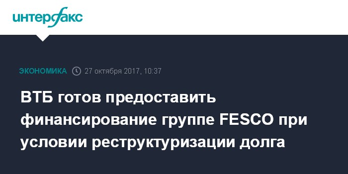 ВТБ готов предоставить финансирование группе FESCO при условии реструктуризации долга