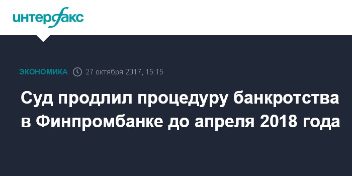 Суд продлил процедуру банкротства в Финпромбанке до апреля 2018 года