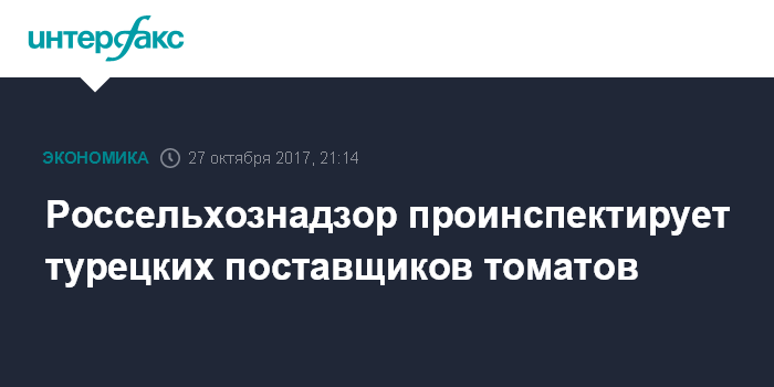 Москва. 27 октября. INTERFAX.RU - Россельхознадзор может на следующей неделе провести инспекции турецких предприятий, заинтересованных в поставках томатов на российский рынок.