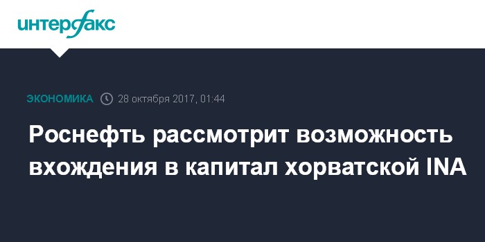 Роснефть рассмотрит возможность вхождения в капитал хорватской INA