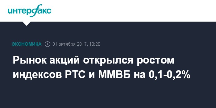 Рынок акций открылся ростом индексов РТС и ММВБ на 0,1-0,2%