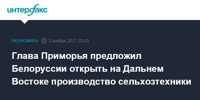 Глава Приморья предложил Белоруссии открыть на Дальнем Востоке производство сельхозтехники
