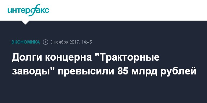 Долги концерна "Тракторные заводы" превысили 85 млрд рублей