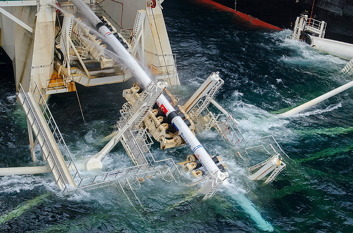 Судно Pioneering Spirit уложило одну нитку до границы с ИЭЗ, после чего вернулось в Анапу для начала глубоководной укладки второй нитки. Другое судно Allseas - Audacia - еще в конце июля завершило укладку обеих ниток на мелководье. Благодаря выбранному порядку укладки удалось завершить основные трубоукладочные работы на морском участке в российской ИЭЗ в ходе одной кампании.