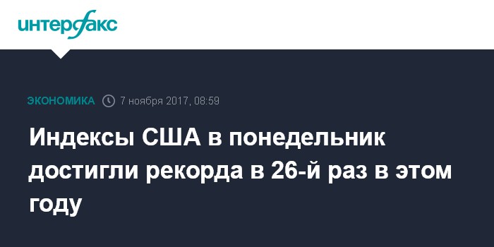 Индексы США в понедельник достигли рекорда в 26-й раз в этом году