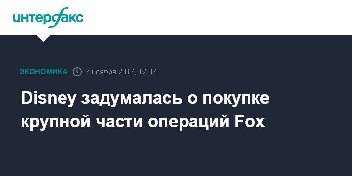 Москва. 7 ноября. INTERFAX.RU - Компания Walt Disney вела переговоры о покупке значительной части операций компании 21st Century Fox, пишет The Wall Street Journal со ссылкой на осведомленные источники.