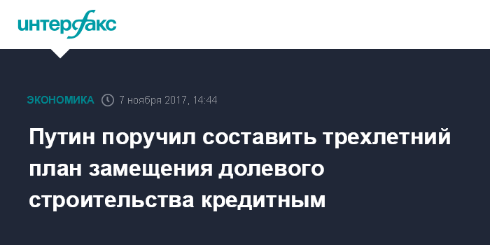 Путин поручил составить трехлетний план замещения долевого строительства кредитным